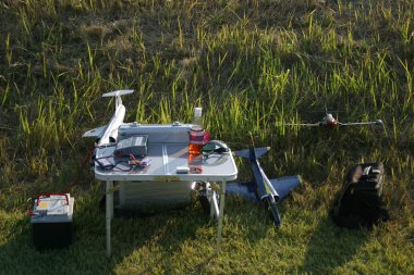 ぱっぱといつもの3機の支度。へろへろ40も後でTOKUさんのデルタと(どちらも元ネタはスーパーマイト)こちらに到着して充電してたら日が暮れますので朝から自宅で充電してきたバッテリー、ハイペリオン800の調子の良い方をA-4に優先させたので104はちょっと眠そうなフライトでした。パンサーに載せたバッテリーは充電した方だったのかどうなのか・・・・ 怪しいフライトでした。