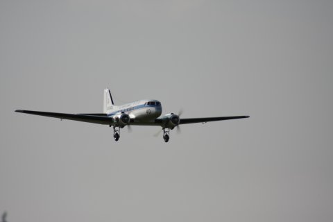 S木さんのDC-3、斉藤の48の双発です。鈍重そうな外見とは違い飛びはデハビランド・コメットの如し。フラップフルダウンだととんでもなく暴れるのを以前見せてもらいましたが、今回はびしっとしたフライト、ローパスからゆったりパワーかけつつ穏やかな旋回させるときの音はたまらないです。