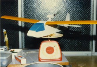 この後に100mahのニッカド(マブチの空中モーターA-1のやつ)とOSのPX−06サーボを使った全備重量170グラムの01機を作りました。