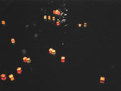 数多くの遺体が川に浮かび伝馬船が通るのが困難だったと伝えられています。その犠牲者の方々へのせめてものお供えとして、毎年このように8月6日の夜「相生橋」(爆撃の目標となったT字型の橋)を中心に「灯ろう流し」という行事が続いております。一部で「精霊流し」と混同して伝えられていますが、お盆の行事で見られるものをは全く別なものです。