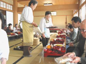 食事風景 早朝から仏教婦人会の方が作って下さいます。