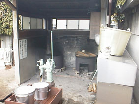 屋外の臨時のかまどです。普段は水汲み場ですが、こういう事もします。