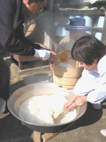 ご飯が炊きあがりました。男の方が朝から集まってわいわいと作って下さいます。