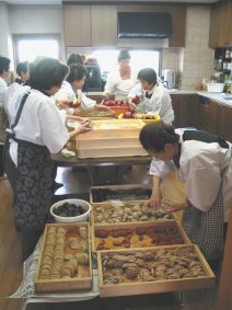 現在は市販のお総菜を使うお寺も増えてきましたが、広島市の旧市内には、まだ「講」(聞法のための地域の組織)が残っているところも多く、婦人会や男性の方々で屋外のかまどで作っています。