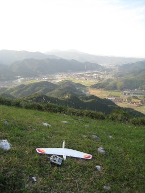 事前に聞いていたよりも良い環境の飛行場でした。もう宿(内牧の常宿)に移動する時間だったので、とりあえず来る前に仕上がったフライングスタイロのオートジャイロを手投げしてみました。
