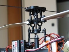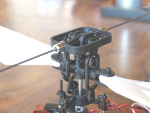 ローターヘッドも固定ピッチのヘッドではシーソーの様なリジットの様なでしたが、センターハブのピンを軸にし、3本の細いOリングで制御された完全なセンターシーソー形式のヘッドとなっています。