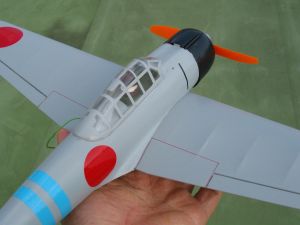 動力はユニオン発泡零戦の50XCに4025ペラという組み合わせがベストであろうと思いますが、リチウムポリマーバッテリーを使おうと思うと、E-Tecの250mahセルではちょっと消費電流が厳しいかな?という気もします。(大植さんからはこの組み合わせで良く飛んだと教えて頂きました)