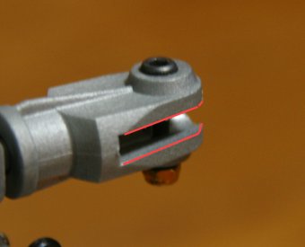 ヒラーコントロールレバーは内側が少し接触しますので削って修正しています。レバーの根本には内径2ミリのシムを入れましたが、レバーのピボットはセンターには来ていません。(いずれアラインの両持ちレバーが国内にも出回ると思いますのでそちらを使う予定です。自作も可能ですけど買った方が安いです)(無ければ作りますが、自作パーツにこだわっているわけではありませんので)